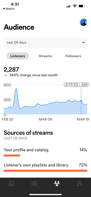 Cade Legat hired our agency in mid February 2023 to help promote his new single, "LOVE ME". We decided to target Pop fans across the world and quickly caught some great traction. "LOVE ME" shot off to an amazing start, seeing 199 streams on it's first day of release. We kept this momentum rolling, and had an amazing first month. "LOVE ME" was streamed 7,993 times by 1,779 listeners during this time frame. These listeners saved this track 1,077 times and added it to 705 different playlists, giving it a save rate of over 100%! This data is pure gold to Spotify. When songs have very strong positive data, Spotify is way more likely to push these tracks through algorithmic playlists such as Discover Weekly and Release Radar. This is exactly what happened with Cade.