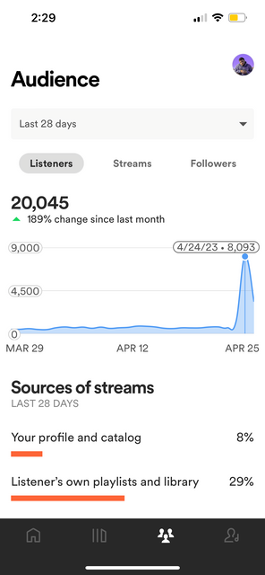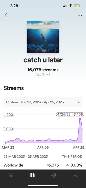 Sensitive Sean first hired our agency in March 2023 to help promote his new single, "catch u later". This track jumped off to an electric start from the beginning. Within the first week, "catch u later" was seeing upwards of 650 streams per day! This track has seen some insane growth over the last month of promotion, and has even received a huge algorithmic push through Spotify Radio!